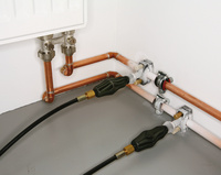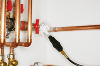 Einfaches, schnelles Einfrieren von nicht entleerten Rohrleitungen mit Kältemittel Kohlendioxid. Für Reparatur und Erweiterung von Rohrleitungssystemen.